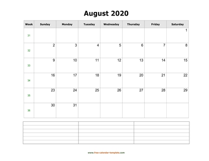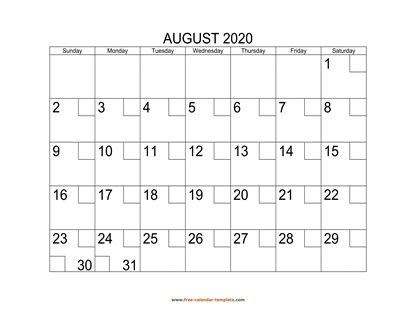 Free 2020 Calendar (Blank August Template)