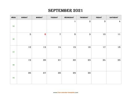 September 2021 Calendar Free Printable with grid lines designed (horizontal)