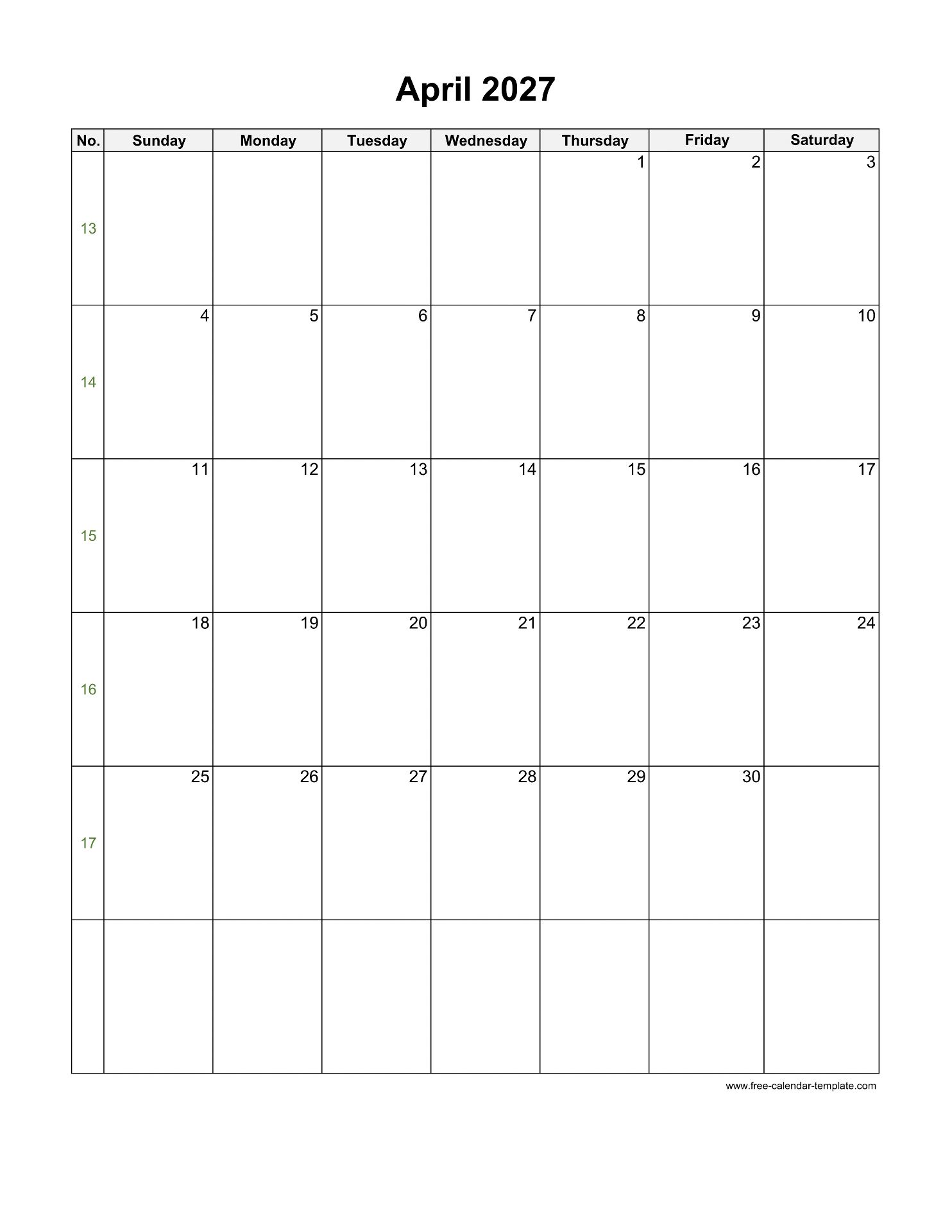Free 2027 Calendar (Blank April Template)