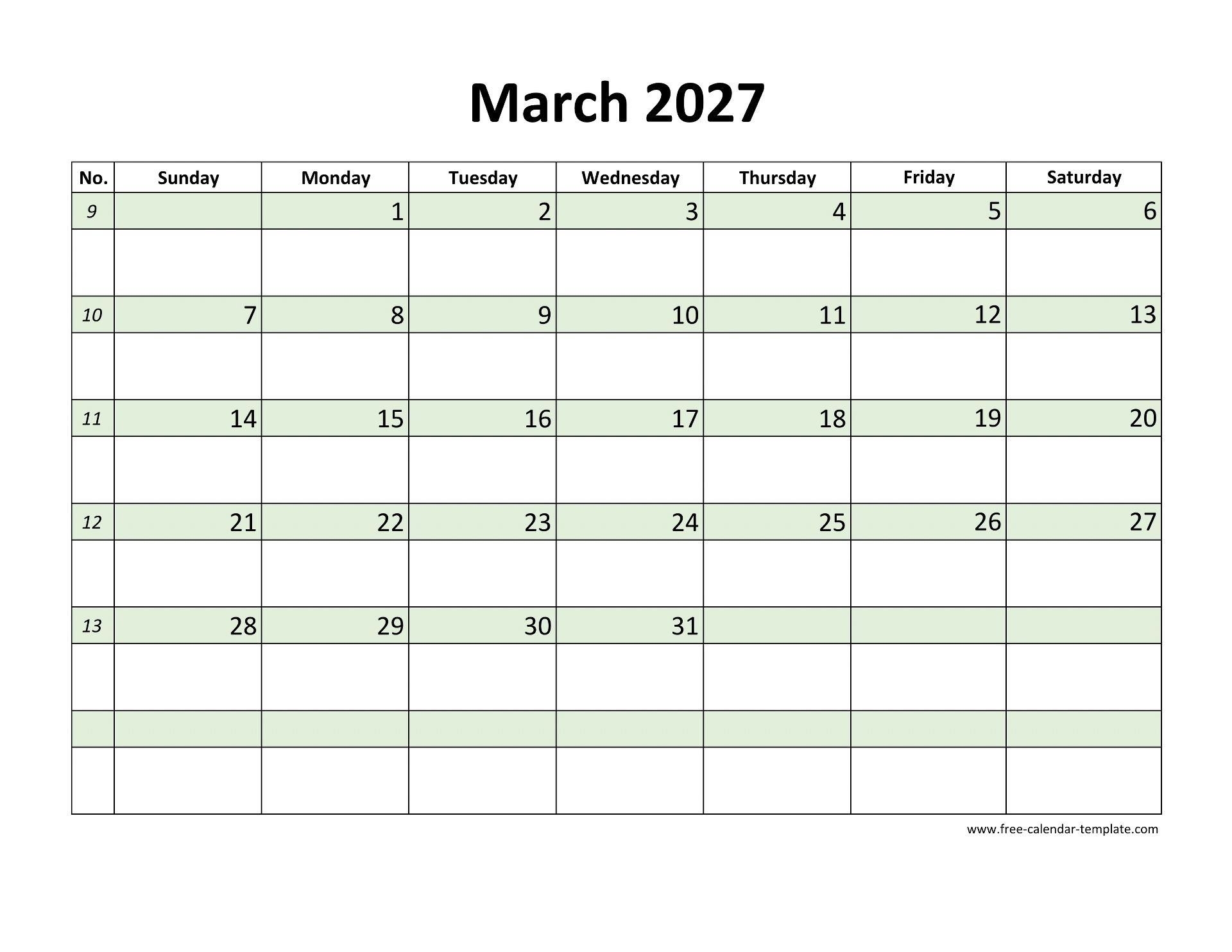 Free 2027 Calendar (Blank March Template)