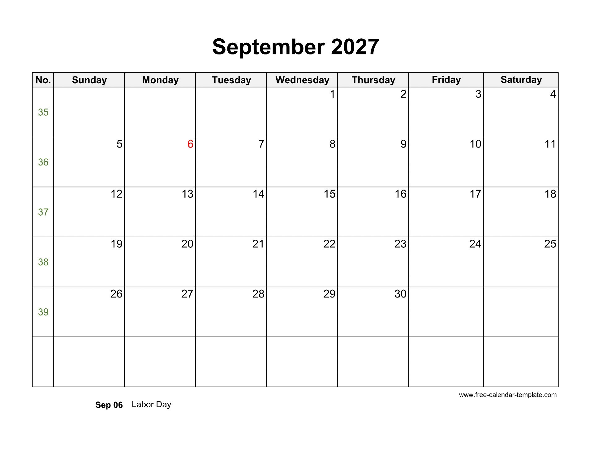 » View all September 2027 Calendar Template