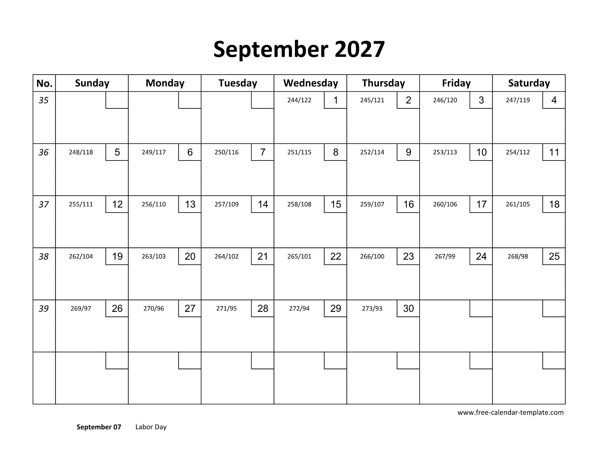 Free 2027 Calendar (Blank September Template)